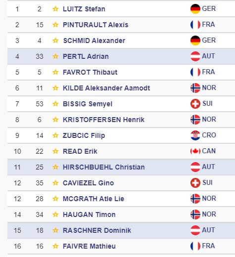 1 Petra Vlhova 2 Federica Brignone 3 Elisa Moerzinger 4 Marta Bassino 5 Kristin Lysdahl 6 Franziska Gritsch 7 Meta Hrovat 8 Sofia Goggia 9 Wendy Holdener 10 Thea Louise Stjernesund 11 Sara Hector 12 Tina Robnik 13 Ana Bucik 14 Nina O Brien 15 Katharina Truppe 16 Lara Gut 17 Laura Pirovano 18 Katharina Liensberger 19 Lena Duerr 20 Coralie Frasse Sombet 21 Asa Ando 22 Maria Therese Tviberg 23 Katharina Huber 24 Andrea Ellenberger 25 Martina Dubovska 26 Ekaterina Tkachenko 27 Marusa Ferk 28 Alice Robinson 29 Charlie Guest 30 Jessica Hilzinger 31 Adriana Jelinkova 32 Ester Ledecka ecc