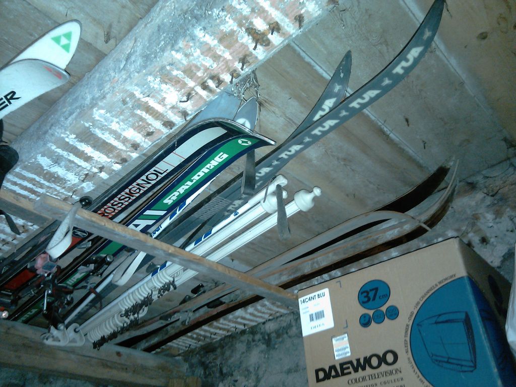 Inviato - 13 gen 2010 : 09:29:03 eccomi tornato dalla montagna il resoconto può essere solo che positivo, ho scoperto di riuscire a sciare ancora come una volta, gli ultimi 2 giorni ho provato a far curve carving ma ho avuto poco successo qualche problema con le punte degli sci che a volte si toccavano(mazza se son larghi davanti) ho provato degli head cxp (mi pare), dei salomon x-wing 178cm(di mia morosa)e i famosi rc 173cm con nessuno dei 3 mi son trovato male, ho notato però che i primi due son molto morbidi, mentre gli rc son duri e li preferisco dovrò cambiare anche gli scarponi perchè 1 son diventati di legno, 2 la scarpetta di è sformata e il piedi mi balla un pò vi lascio con qualche foto di un pò di sci oldstyle che ho stoccato in montagna