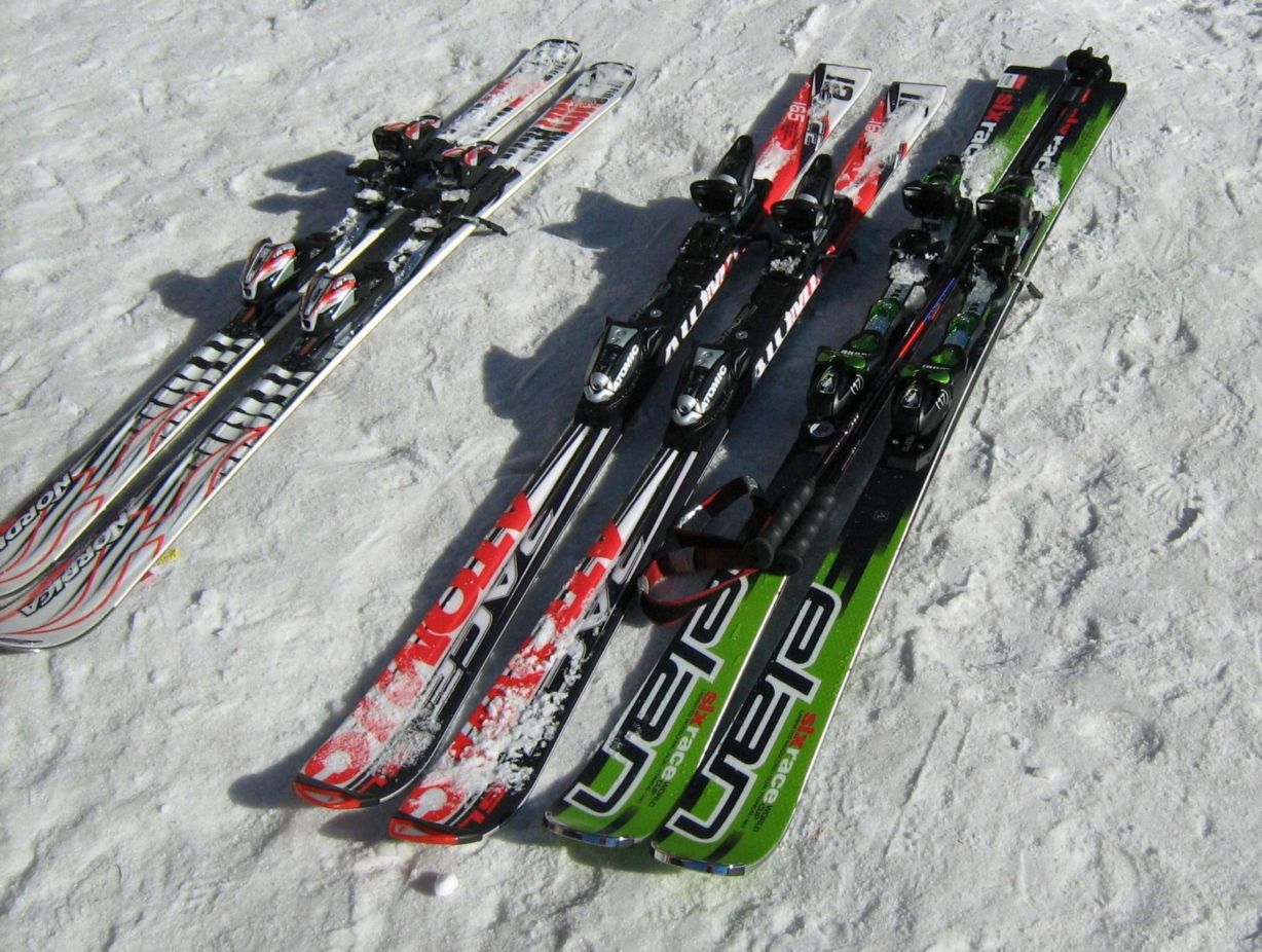 Vantaggi? Uno per tutti: non c’è più differenza fra attacco noleggio e attacco, diciamo, tradizionale con conseguente riduzione del magazzino. E quindi dei costi. Altro indiscutibile vantaggio è per il rivenditore: addio dime (le pagano care e sono tantissime); addio forature (con la curiosità: uscirà legno o schiuma?); addio personale specializzato per calcolare il centro sci ed eventualmente personalizzare il montaggio della piastra; ecc. Anche un bambino è ora in grado di infilare un puntale ed una talloniera nella slitta. Sicuramente questo sistema va benissimo per sci, al massimo, da granturismo; per mia moglie infatti ho acquistato un Hot Rod con slitta (nella foto a sx) ma per sci di alto livello, il mio e quello del Ninja Verde, (nella foto Atomic e Elan) ci sono VITI e BOCCOLE.