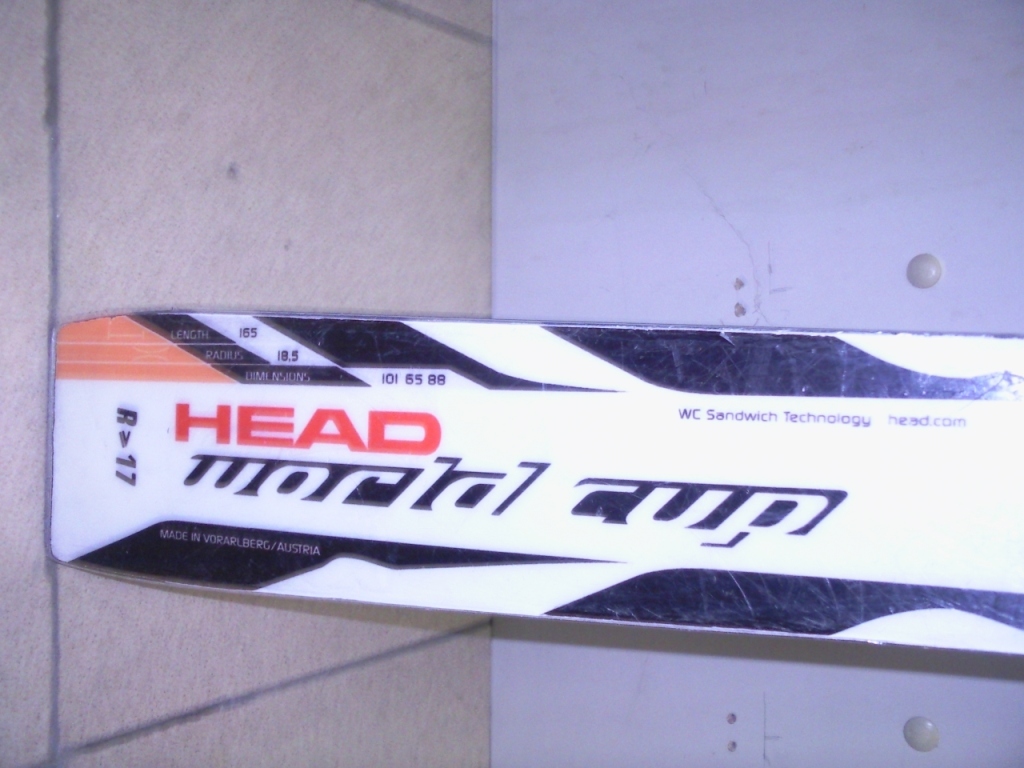 descrizione oggetto: Sci da gigante gara junior FIS comitato, marcato >17m modello Head Word Cup GS Team 165cm, anno 2009 Misure 101-65-88, raggio 18.5m con attacco Head FreeFlex Pro11 , regolabile 3-11 Lamina= 87° Tuning= 0.75°, soletta con impronta a V.