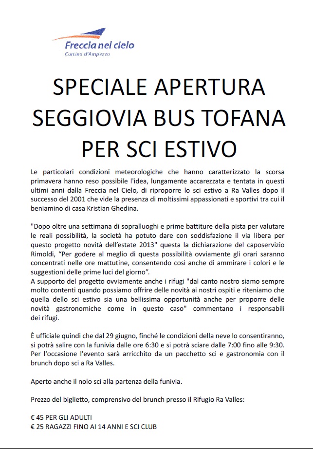 Riporto il communicato che mi è arrivato dalle funivie Tofane di Cortina:
