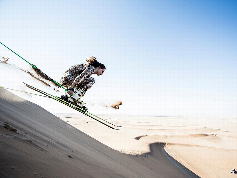 Swakopmund è una città della Namibia occidentale, e sorge sulla costa atlantica circondata dal deserto del Namib...Qui, tra enormi dune di sabbia, in uno scenario lontanissimo da quello abituale, troviamo Anna Fenninger e i suoi Head, con una tutina "panterata", per una campagna fotografica promossa dalla Cheetah, una associazione che si batte per la salvaguardia dei grandi felini, di cui Anna è testimonial.