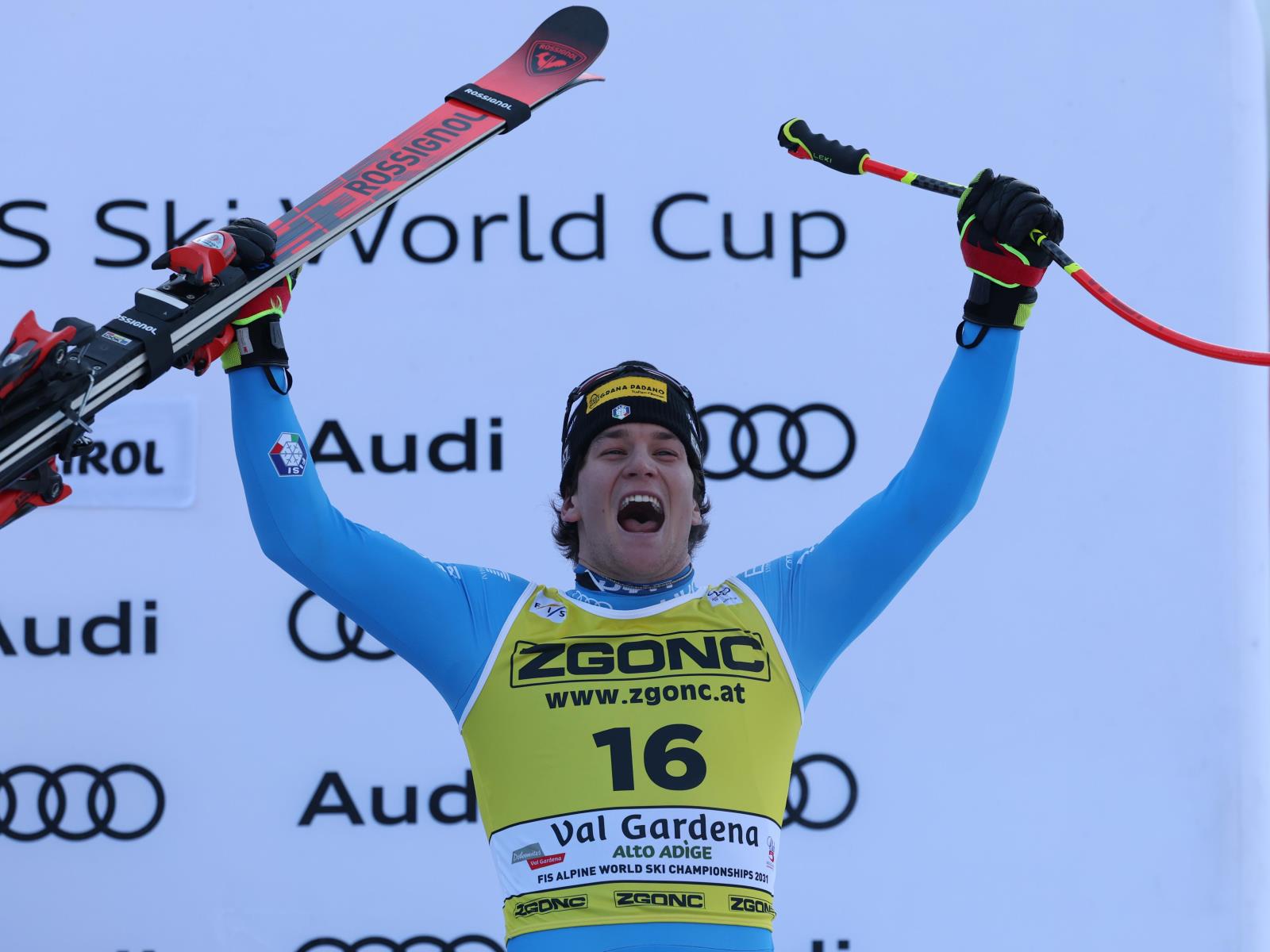 Mentre aspetta che tutti gli avversari completino la gara, arrivano anche i complimenti da parte di Alberto Tomba: "Sono stato sempre un ragazzo insicuro, ricevere oggi i complimenti di Alberto sono una cosa pazzesca. I miei ultimi tre anni sono stati complicati, anche per l’infortunio e ho dovuto crederci. E dico lo stesso a tutti gli altri: credeteci, crediamoci. Non posso che ringraziare tutto lo staff ed i miei compagni, il mio skiman che mi segue da sette anni, il mio preparatore, la mia famiglia: è un miracolo."