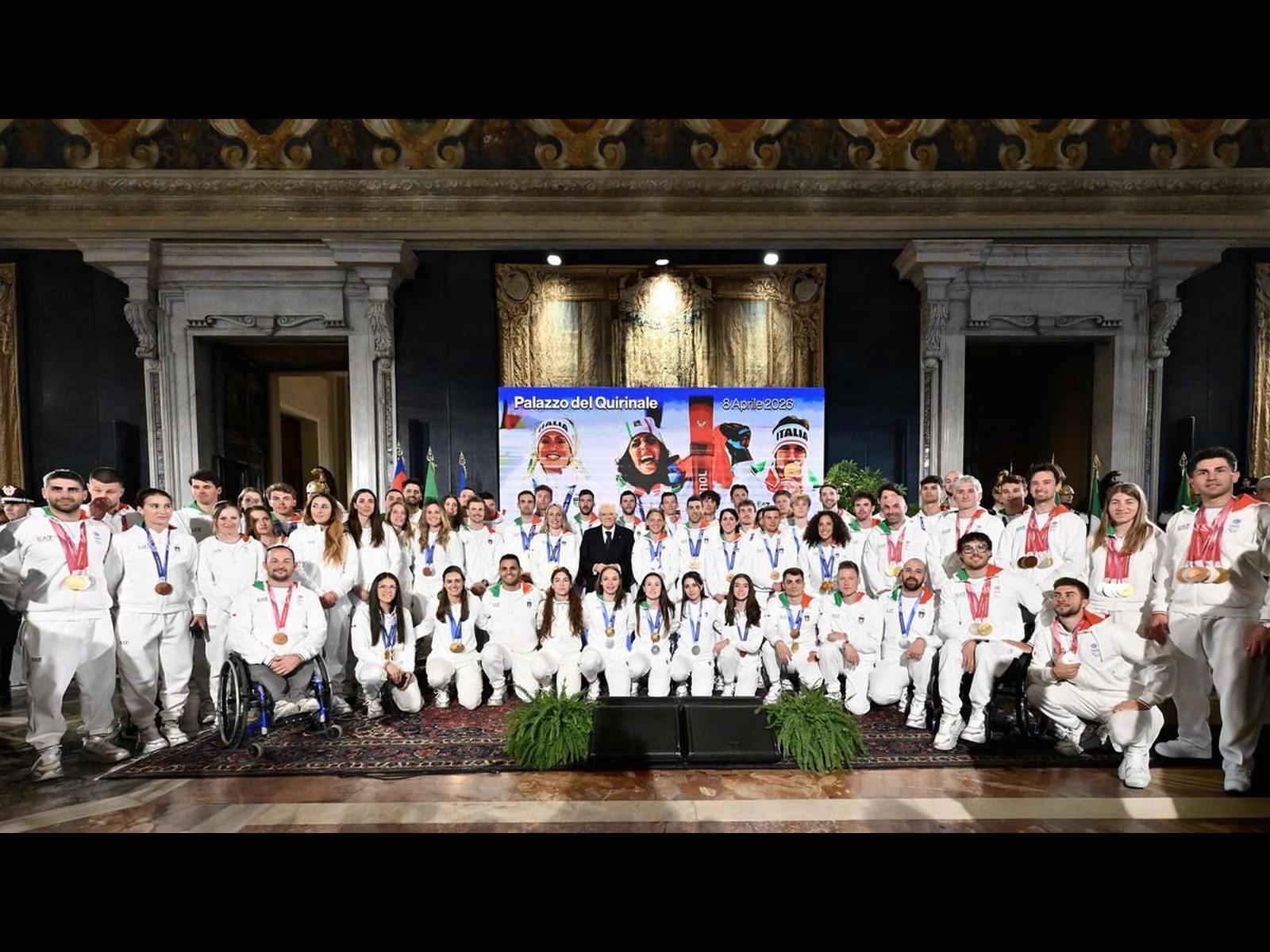 Presenti, oltre agli atleti guidati dai portabandiera olimpici Federica Brignone, Arianna Fontana, Amos Mosaner e Federico Pellegrino e da quelli paralimpici Chiara Mazzel e René De Silvestro, il Presidente della Commissione Cultura, Scienza e Istruzione alla Camera Federico Mollicone e i vertici dello sport azzurro: il Ministro per lo Sport e i Giovani Andrea Abodi, il Presidente del CONI Luciano Buonfiglio, il Presidente del CIP Marco Giunio De Sanctis, il Presidente della Fondazione Milano Cortina 2026 Giovanni Malagò, il Segretario Generale del CONI e Capo Missione dell’Italia Team ai Giochi Carlo Mornati, i Vice Presidenti del CONI Diana Bianchedi (Vicario) e Marco Di Paola, i Presidenti federali Flavio Roda (FISI) e Andrea Gios (FISG) e alcuni dei tecnici che hanno fortemente contribuito ai successi di Milano Cortina 2026.